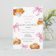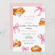 This darling invitation captures the perfect blend of autumn warmth and feminine sweetness. Beautiful watercolor illustrations of pumpkin pies sit alongside satin-pink ribbons and bows, all set upon a soft colour palette of blush pinks, creams, and warm neutrals. The design is ideal for welcoming a little girl, evoking a feeling of home, harvest, and heartfelt celebration.