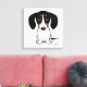 Cartoon style drawing of a black, tan and white Piebald Dachshund. A fun canvas print for anyone who loves wiener dogs. Visit Jenn's Doodle World for even more cute animal art and dog lover's illustrations.