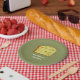 Chewy Italian style bread oozing with garlicky butter, and scattered with herbs. This hand-drawn slice of garlic loaf can be paired not only with food from Italy but any home-made feast. You can add your own text to personalise for an occasion or event, to appear against a sage green background (this shade can be changed if needed).