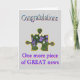 Piece Work. A congratulations card for various occasions including selling a home or buying a new one, passing an examination at school, college or university or maybe driving test, getting a new job and so much more, The card has "Congratulations" and "One more piece of GREAT news" on the front with one piece of a jigsaw puzzle. Inside the card shows more pieces of the same jigsaw the front piece came from with the text "It's all fitting together".