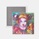 Colourful,vibrant and whimsical watercolor painting in bright red,yellow,blue,white,purple colours inspired from Carnival of Venice and Commedia dell'Arte.