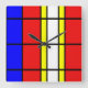 Piet Mondrian Art Style Modern Bright Colours Squa Square Wall Clock
