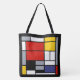 All over print bag inspired by Piet Mondrian's Composition with Large Red Plane, Yellow, Black, Grey, and Blue De Stijl modern art painting.