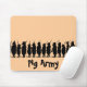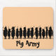 A line of pigs standing at attention holding their guns on their shoulders. Silhouette