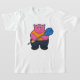 The t-shirt feels and looks great quality, a good thick cotton. It will be a little big for my son, but that means he will be able to wear it and not out grow it too soon. The print was as described on the order when personalised. True size, shape and colour T-shirt- thanks.