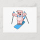 Pig as Skier with Ski Scarf & Ski poles Postcard