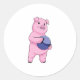 Pig at Bowling with Bowling ball Classic Round Sticker