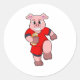 Pig at Football Sports Classic Round Sticker