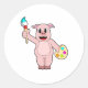 Pig at Painting with Brush & Colour Classic Round Sticker