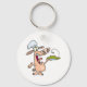 A pig chef holding a plate of food. This design looks really effective on these Keychain