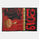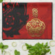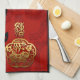 In a square are 2 pigs: one (black papercut Chinese style) seems to come sniff a golden papercut shape (inside is the second pig with the Chinese symbol). Behind them there is a red background formed by large decorative and ornamented letters with the words: "Pig Year" and at the top "Year of the Pig" + large 2019. Design on vertical kitchen towel. You can easily change year (font, colour, size and position), background colour and size of the design by clicking the customise button. Matching home products, greeting card, postcard, craft products and more. Perfect for Chinese New Year 2019 of the Pig or birthday (people born in the Pig year).