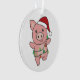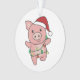 The pig at Christmas with fairy lights. Funny animals with gifts and snow for the holidays. A sweet Christmas greeting. Pigs are cute animals and perfect for Christmas.