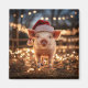Square magnet featuring an adorable pig wearing a Santa hat and surrounded by Christmas twinkle lights.