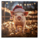 Ceramic tile featuring an adorable pig wearing a Santa hat and surrounded by Christmas twinkle lights.