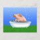Pig Taking Bath holding rose cartoon digital illustration animal farm flower