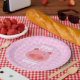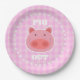 Illustration of a cute pig over a picnic pink background with text that reads: "PIG OUT"