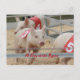 An adorable ham on hoof running in a pig race towards his oatmeal cookie. Cute pink piglet with the number three silk is in focus with numbers four and five nearby. Red text on the bottom reads "A day at the races". Great for any porcine fan or pink piggie lover!
