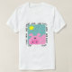 A pink pig, blue sky, and yellow sun with kid style text that reads "pig says oink" on T-shirts, mugs, cards, stickers, tote bags, keychains, and other pig clothing and gifts.