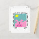 A pink pig, blue sky, and yellow sun with kid style text that reads "pig says oink" on T-shirts, mugs, cards, stickers, tote bags, keychains, and other pig clothing and gifts.
