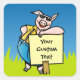 A cool pig with sunglasses and a sign ready to pass your message over green grass, under blue sky. Customise it by adding your text or moving the background.