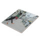 This decorative ceramic tile features my cartoon style image of a dapper Pigeon wearing a hat, whistling a merry tune and carrying an umbrella, walking along an urban street.