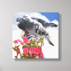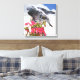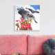 This gorgeous wrapped canvas features a photograph taken on my balcony of a pair of pigeons sitting on the balcony rail above a colourful hanging pot of pink Geraniums.