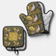Pigeon Blue Yellow Fish Art Nouveau Oven Mitt & Pot Holder Set