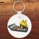 Keep track of your money is the message with this fun design. It is a yellow piggy bank which is sitting on top of a calculator. This piggy bank on a calculator design looks great on this Keychain