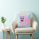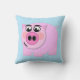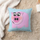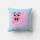 Pillow featuring pink pig on transparent background. Choose background colour for thousands of different looks. Colour shown is light blue.