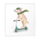 Cute piglet on a scooter wearing hat and scarf! Happy ride!