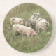 This pretty sandstone coaster features a beautiful photograph of a group of cute pigs in a field. Some of the pigs are rooting around in the earth while others look on.