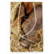 This very cute pig is sound asleep in their straw bed.