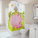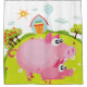 A cute farm theme shower curtain features a hay barn, apple trees, sun, clouds, and two funny pink pigs!