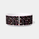 This is a heavy, durable bowl decorated with Tibbies of many colors, the perfect size for hungry/thirsty Tibs. The design is interesting and printing clear.