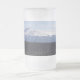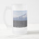 A frosted mug featuring a photo of Pike's Peak in Colorado.
