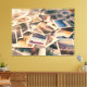 A collection of photographs is scattered across a surface. The vivid colours and varied scenes suggest travel and memorable events.