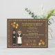 Invite guests to your Thanksgiving Dinner Party with this charming invitation. The brown background has a festive marquee, a pilgrim couple, fall leaves and acorns. (vt)