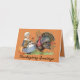 Cute vintage card illustration with a little Pilgrim girl feeding a wild turkey while she sitting on a pumpkin. Great for Thanksgiving and fall.