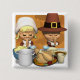 Girl and boy pilgrim saying prayers before Thanksgiving dinner.