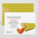 A contemporary design featuring a gold prescription bottle with bright orange capsule medication. A fun graduation invitation that's perfect for a graduating pharmacist.