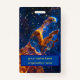 A great name badge for astronomers with template text for you to change to give your contact details and area of specialism / interest. The image is a view of The Pillars of Creation taken by the Near-Infrared Camera (NIRCam) of NASA’s James Webb Space Telescope. The pillars are regions where young stars are forming – the bright red orbs. When knots with sufficient mass form within the pillars, they begin to collapse under their own gravity, slowly heat up, and eventually begin shining brightly as stars. The Pillars of Creation are to be found in a small region of the Eagle Nebula and are a favourite among astronomers, young and old. Image credit: NASA and STScI