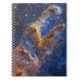 This stunning image taken by the JWST James Webb Space Telescope shows a brilliantly coloured view of the cosmic structure known as the Pillars of Creation. In this orientation you can imagine the image also shows a T-Rex dinosaur facing right with gaping mouth and small arm in the midst of the stars, and installer gas and dust.