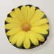 Round pillow with a bright yellow daisy like flower on a dark background, to brighten up any room.