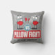 Hilarious spoof has a throw cushion VS a soft pillow duking it out with boxing gloves and says Pillow Fight! Lightweight Championship in retro red, white, blue and grey colours.