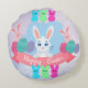 Round Pillow with bunnies of different colours and Happy Easter