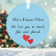 In the front, is an illustration of a fun Christmas Tree made from different aeroplanes with typography 'Merry Christmas', which can be customised. On the back a heartfelt message 'Sky's Finest Pilot, we love you very much, [Names]' that can also be customised. It's a cool Aviation ornament in a minimalist design. Perfect for a Pilot that likes simplicity.
