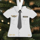 Take to the skies with this pilot shirt Christmas ornament. A perfect tribute to aviation lovers and professionals alike. Styled like a classic pilot uniform, it adds soaring adventure and sophistication to your holiday décor. Ideal for honoring a pilot, husband, wife, boyfriend, girlfriend, friend, or family member who loves to fly. Personalize this ornament to create a meaningful keepsake for Christmas, flight school graduations, or aviation milestones.