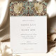 This exquisite wedding invitation features a lush Art Nouveau pattern inspired by the works of William Morris, celebrated for his intricate designs and influence on the Arts and Crafts movement. The front of the invitation showcases a symphony of colours with a focus on rich maroon, soft beige, sage green, and delicate pink accents. The botanical elements include stylised large blooms, intertwined with slender leaves and dainty florals, creating a timeless and romantic appeal. This invitation combines classic elegance with a touch of nature, perfect for couples looking to infuse their special day with the beauty of historical artistry. The design evokes the Pimpernel motif, one of Morris’s renowned patterns, and is printed on high-quality paper that adds a luxurious feel to your wedding announcement.