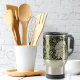 A travel mug with the floral pattern by William Morris (1834-1896), Pimpernel (1876), from the arts and crafts movement. A stunning homage to the renowned English artist's timeless masterpiece featuring large white poppies, yellow pimpernel flowers, and lush green leaves.