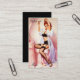 Pink pin up girl business card featuring pretty red head trimming her hair. Perfect business card for hair stylist and salons.